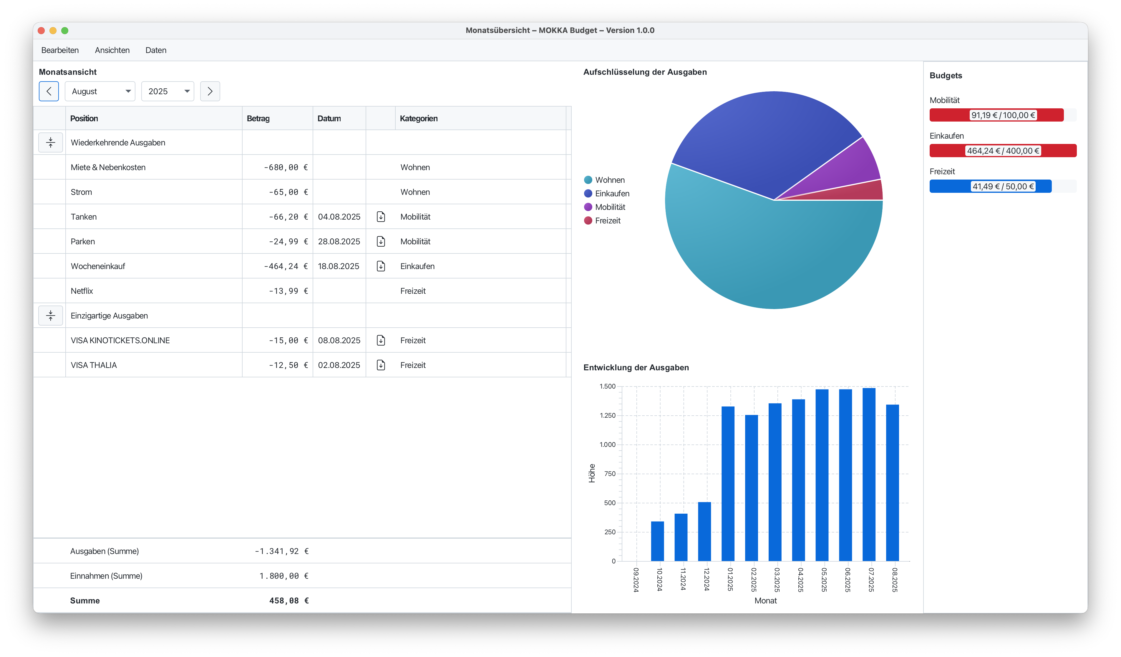 - Verwaltung von Budgets je Kategorie