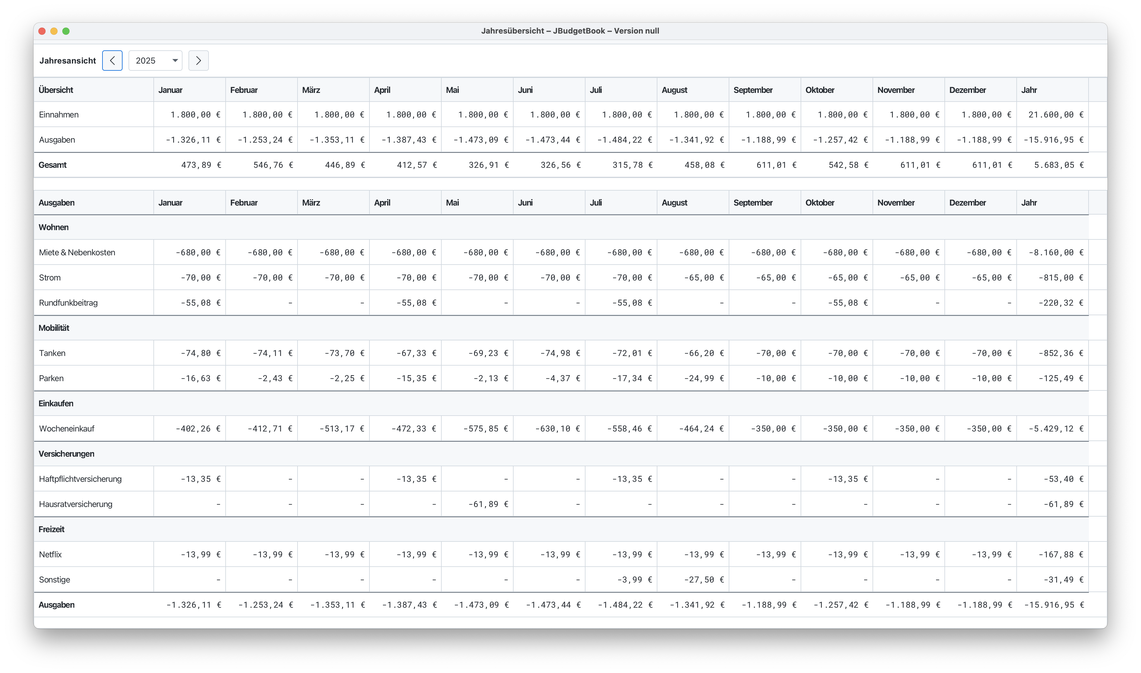 Nachverfolgen, Planen & Analysieren – JBudgetBook verwandelt Zahlen in Klarheit und gibt dir die Kontrolle über deine Finanzen zurück.