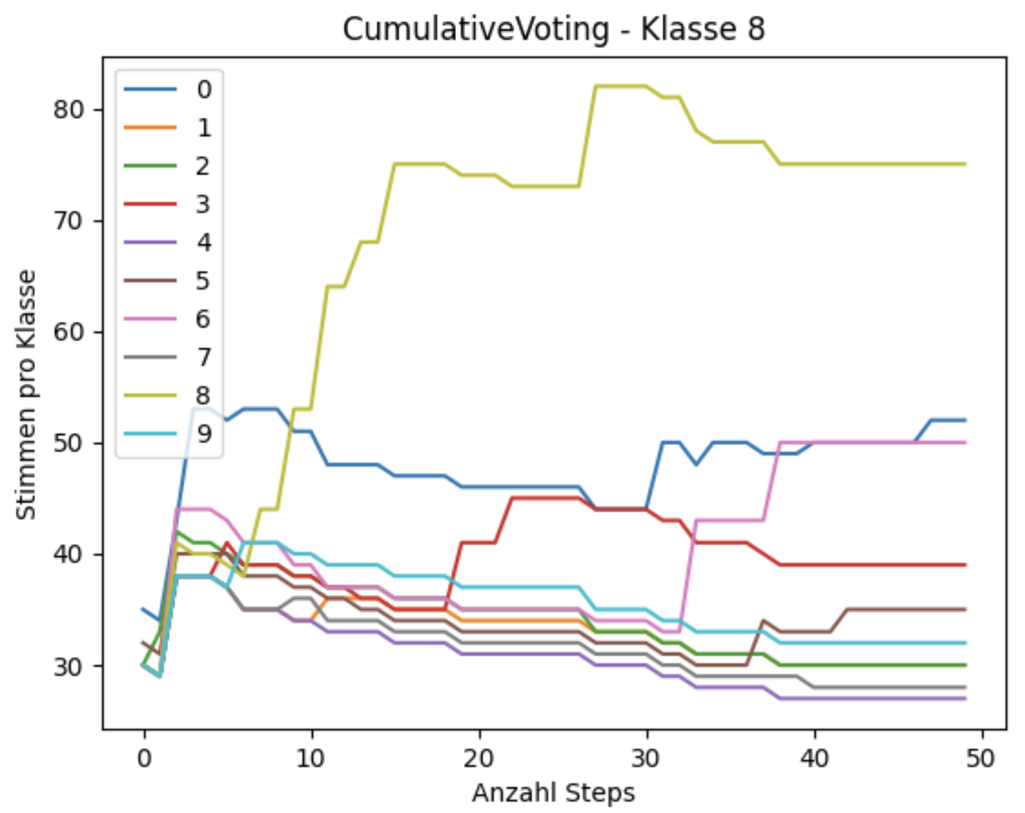 In der Evaluation wird festgestellt, dass ca. 20 Agenten mit ca. 100 durchgeführten Schritten und Cumulative Voting als Methode zur globalen Entscheidungsfindung am besten geeignet sind für den vorliegenden Anwendungsfall. Insgesamt wird das System auf drei Datensätze angewendet. Zunächst wird ein synthetischer Datensatz, welcher die Ziffern „0“ bis „9“ verschiedener Schriftarten enthält, verwendet. Dieser dient dazu, eine erste Überprüfung und Konfiguration des Systems zu ermöglichen. Anschließend wird die Robustheit gegen Rauschen auf einer verrauschten Variante des synthetischen Datensatzes durchgeführt.