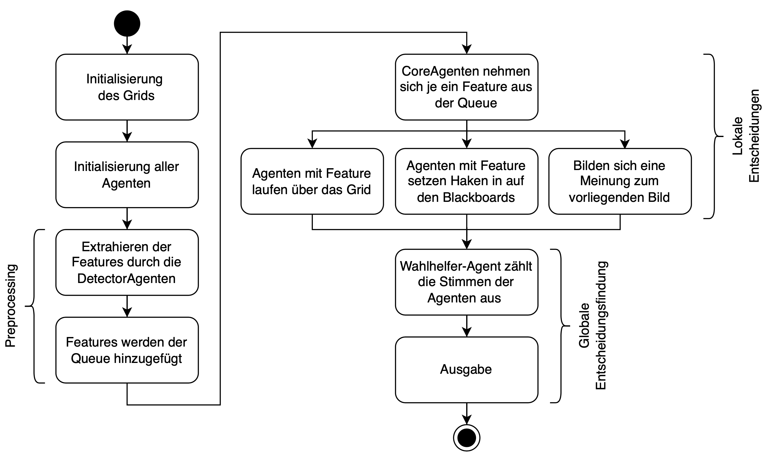 Dazu wird in drei Schritten vorgegangen: Theorie, Analyse und Synthese. In diesen Teilen wird stets ein Bottom-Up-Ansatz verfolgt. Zuerst wird die Feature Extraction und die Wissensbasis beleuchtet, dann die Agenten und abschließend das gesamte Zusammenspiel in dem Multi-Agenten-System.